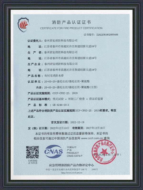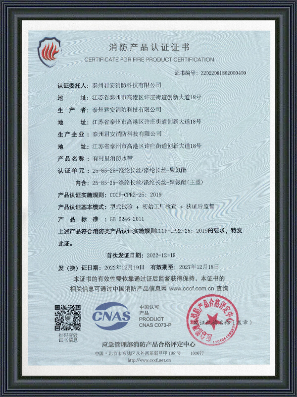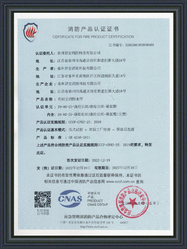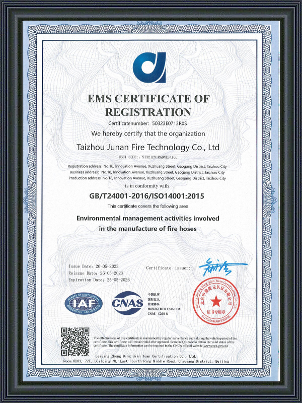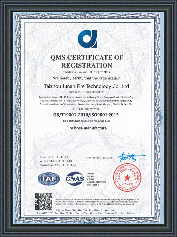 Taizhou Jun'an Fire Technology Co., Ltd., sebagai sebuah syarikat yang mengkhususkan diri dalam pengeluaran hos kebakaran, peralatan pemadam kebakaran dan peralatan menyelamat kecemasan, telah menjadi pemimpin industri dengan teknologi pengeluaran yang kuat dan pengalaman industri yang kaya. Syarikat ini terletak berhampiran Shanghai, pelabuhan perdagangan terbesar di dunia, dengan lokasi geografi yang unggul dan dapat bertindak balas dengan cepat terhadap permintaan pasaran.